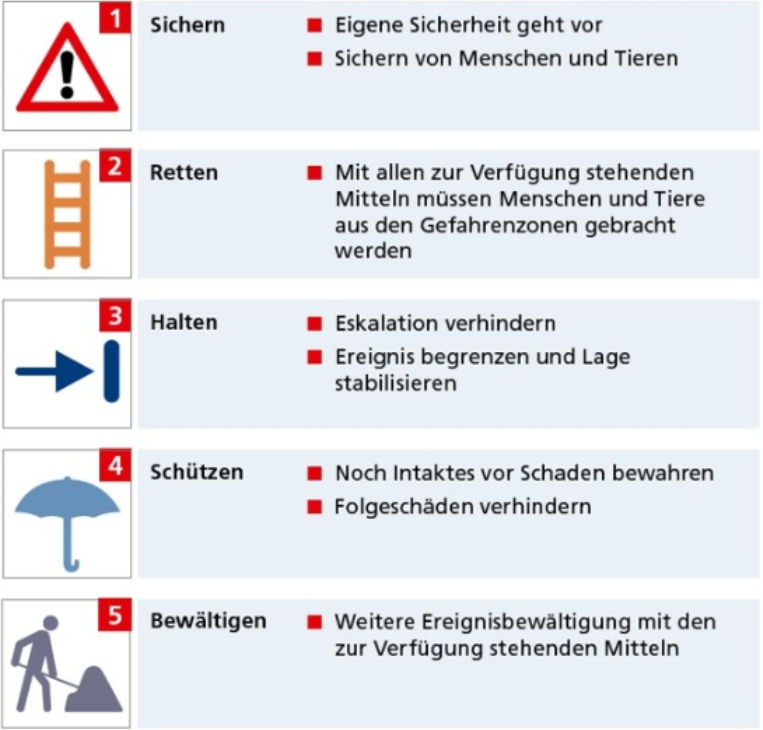 § 73 im Gebäudeversicherungsgesetz:Aufgabe der FeuerwehrDie Feuerwehr hat bei Bränden, Explosionen, Hochwasser, Erdbeben, anderen Elementarereignissen, Katastrophen und dergleichen unverzüglich Hilfe zu leisten. Sie kann von der Gemeinde auch für den Einsatz bei Herznotfällen, für Bewachungsaufgaben und zur Unterstützung von Polizeiaktionen (Verkehrspolizei usw.) eingesetzt werden. Die Mitwirkung aufgrund anderer Gesetze bleibt vorbehalten.